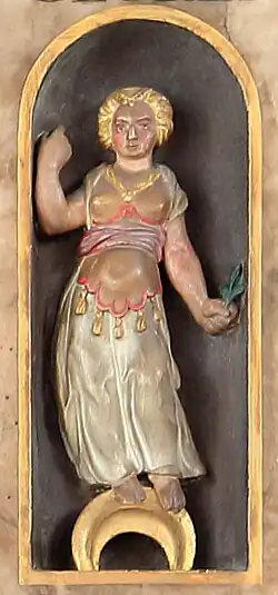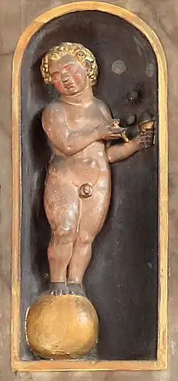 The quartet of figurines sculptured in marble, Pax, Gloria, Vanity, Labor exhibit primary thematic concerns and stylistic attributes of Northern Mannerist art, namely, portraiture of animated human movement, variety and multiplicity, often set in the Classical or mythological world, and inclined towards esoteric concepts.[1]