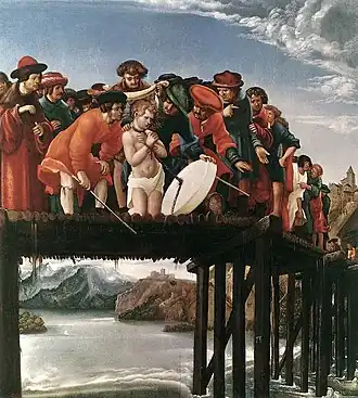 The Martyrdom of Saint Florian is an oil-on-panel painting executed c.1518–1520 by the German artist Albrecht Altdorfer, signed with his "A in A" monogram on a post of the bridge on the right. It and the artist's Saint Florian Taking Leave of the Monastery were in the Spannocchi collection of the Pinacoteca nazionale di Siena until 1914, when they were both transferred to their present home in the Uffizi in Florence to strengthen the latter's holdings on the Northern Renaissance.[1]