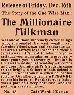 1. ^ a b c d Q. David Bowers (1995). "Volume 2: Filmography - The Millionaire Milkman". Thanhouser.org. Archived from the original on March 4, 2016. Retrieved March 12, 2015.