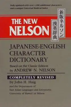 The New Nelson Japanese-English Character Dictionary (新版ネルソン漢英辞典, Shinpan Neruson Kan-Ei jiten) is a kanji dictionary published with English speakers in mind. It is an updated version of the original dictionary authored by Andrew N. Nelson, The Modern Reader's Japanese-English Character Dictionary. The primary change in the new version is the adoption of the traditional 214 Kangxi radicals as the dictionary's main indexing method. The dictionary also features two additional indices: the Universal Radical Index and the on-kun index.
