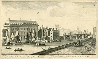 The Custom House was a large brick and limestone building located at present-day Wellington Quay in Dublin, Ireland which operated as a custom house, hosting officials overseeing the functions associated with the import and export of goods to Dublin from 1707 until 1791.[2][3] It also served as the headquarters of the Revenue Commissioners, as a meeting place and offices for the Wide Streets Commission and was said to be Dublin's first dedicated office building.[4]
