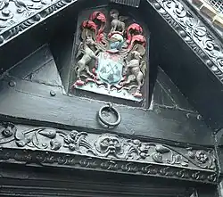 The coat of arms above the front door is that of the Worshipful Company of Butchers, although Hereford is reported to have had its own butchers' guild when the house was built.[5]