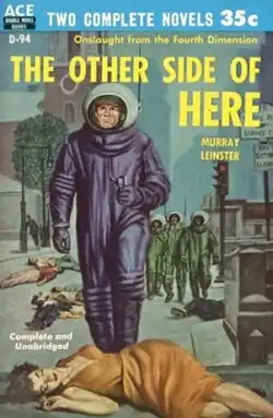 The Other Side of Here is a science fiction novel by American writer Murray Leinster, first published as a five-part Astounding Stories serial in 1936, under the title "The Incredible Invasion". It was first published in book form, in a "thorough revision",[1] as one side of an Ace Double, in 1955. While no further American editions have been issued, the novel has been translated into Italian (L'altra dimensione, 1955), Spanish (Ataque desde la Cuarta Dimensión, 1956), French (L'autre côté du monde, 1958) and German (Invasion aus einer anderen Welt, 1959).[2] The novels tells the story of "an invasion from the fourth dimension", foiled by an insurrection against the invaders' home government.[3]