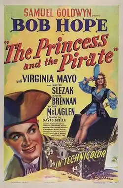 The Princess and the Pirate is a 1944 American comedy film directed by David Butler, and starring Bob Hope and Virginia Mayo. Based on a story by Sy Bartlett, the film is about a princess who travels incognito to elope with her true love instead of marrying the man to whom she is betrothed. On the high seas, her ship is attacked by pirates who plan to kidnap her and hold her for ransom, unaware that she will be rescued by the unlikeliest of knights errant. Produced by Samuel Goldwyn, The Princess and the Pirate received Academy Award nominations for Best Art Direction and Best Music Score.