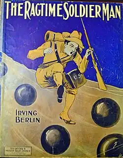 "The Ragtime Soldier Man" is a World War I era song released in 1912 and 1917. Irving Berlin wrote the lyrics and composed the music, basing it off his 1911 song "Alexander's Ragtime Band".[1][2] The song was published by Waterson, Berlin & Snyder, Co. of New York, New York. Artist Pfeiffer designed the sheet music cover. It features a U.S. soldier holding his rifle and jumping over cannon balls.[3] The song was written for voice and piano.[4]