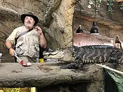 ![]() Jay Brewer, the founder, at the zoo with an American alligator in 2018 | |