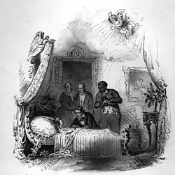 Slave marriages were illegal in southern states, and slave couples were frequently separated by slaveowners through sale. Blassingame grants that slaveowners did have control over slave marriages. They encouraged monogamous relationships to "make it easier to discipline their slaves. ... A black man, they reasoned, who loved his wife and his children was less likely to be rebellious or to run away than would a 'single' slave."[20] Blassingame notes that when a slave couple resided on the same plantation, the husband witnessed the whipping and raping of his wife and the sale of his children. He remarks, "Nothing demonstrated his powerlessness as much as the slave's inability to prevent the forcible sale of his wife and children."[21]
