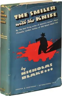 The Smiler with the Knife is a 1939 thriller novel by the Anglo-Irish writer Cecil Day-Lewis under the pen name Nicholas Blake.[1] It is part of his series featuring the private detective although the focus of the novel is primarily on his wife Georgia. The title is a line from The Knight's Tale by Geoffrey Chaucer.[2] Written the year the Second World War broke out, it portrays a pre-war plot by aristocratic fascists to establish a dictatorship in Britain in alliance with the Axis Powers.[3] It was serialised in the News Chronicle over the summer of 1939.[4] Orson Welles was interested in directing an adaptation of the novel as a film as part of his contract with RKO Pictures but was unable to get the project off the ground.[5] Maurice Ashley wrote a positive review of the book in the Times Literary Supplement.