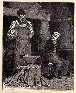 According to George Monbiot, the blacksmith is a motif of folklore throughout (and beyond) Europe associated with malevolence (the medieval vision of Hell may draw upon the image of the smith at his forge), and several variant tales tell of smiths entering into a pact with the devil to obtain fire and the means of smelting metal.[9]