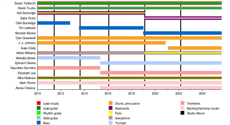 | Members | Susan Tedeschi Derek Trucks Elizabeth Lea Tyler Greenwell Mike Mattison Mark Rivers Ephraim Owens Kebbi Williams Alecia Chakour Brandon Boone Gabe Dixon Isaac Eady |