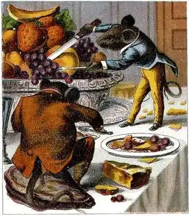 In all versions of the original fable, much is made of the poor fare upon which the country mouse subsists. Dried (grey) peas and bacon are frequently mentioned and it is these two that the early 19th-century author Richard Scrafton Sharpe (c. 1780–1852) uses in a repetitive refrain to his lyrical treatment of "The Country Mouse and the City Mouse".[20] He was the author of Old friends in a new dress – or Familiar fables in verse, which went through different editions from 1807 onwards. The stories are told in song measures rather than as a narrative, and it was in a later edition that this retelling appeared.