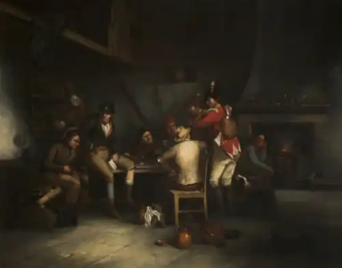 The Village Recruit is an 1805 genre painting by the Scottish artist David Wilkie.[1][2] Painted at the time of the Napoleonic Wars it shows a recruiting party of the British Army in a country tavern where one young man has just enlisted and prepares to spend his King's shilling on further alcohol.[3] It was painted when Wilkie was around twenty, the year he moved to London to study at the Royal Academy. It was one of three paintings that were spin-offs from his 1804 work Pitlessie Fair, which had featured a recruiting party.[4] Influenced like much of Wilkie's work by the old masters of the seventeenth century, it has strong similarities to his better-known work The Village Politicians.[5] It was initially known by the alternative title Bounty Money.[6]
