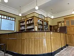The building was substantially rebuilt in about 1900,[3] and internally refurbished in 1914 by local architect F. J. Veall,[3] at which time the building was decorated throughout with green and brown ceramic tiles.[3][4] With a functional and easy-to-clean internal style, while adjoining Victorian buildings were demolished and redeveloped, twice on one side, it remained untouched, both outside and in, except for an occasional coat of paint. The pub retained its brown ceramic urinals, although the rest of the interior was updated in the 1950s.[2] Local writer John Williams commented in 2011:[5]