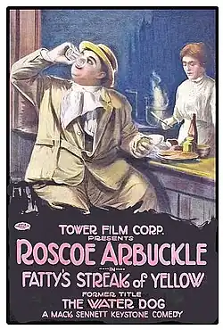 The Water Dog is a 1914 American short comedy film directed by and starring Fatty Arbuckle.[1] The film primarily follows the attempts to rescue a young girl who has been stranded on a rock in the ocean as the tide comes in, necessitating the involvement of local police and bystanders. The conflict is resolved when the girl is rescued by her pet dog, hence the title of the film.