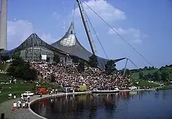 The actual initiator of the music event was Jürgen Birr aka "Anurakta", on his part a Sannyasa-follower, who already in the summer 1973, one year after the 12. Olympic summer games, sporadically brought musicians to the sea stage in the Olympiapark for the first time. The audience therefore, for a long time, came from the hippie and Bhagvan movement.[2][3][4] In 1974, Birr organized the first open-air "Theatron" concert with Artur Silber, a drummer of a band called Sonnenschiff and later in Central Park, together with the Jugendkulturwerk München and Einberg Musik Motor on 23 June with the band Sahara.[5][6]