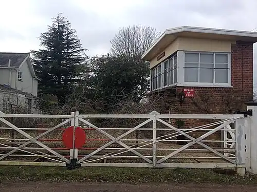 There is still a Station Road with a pronounced dogleg where it crossed the track. The station building has been carefully preserved by its present owners, along with the signal box, waiting room and level crossing gates.