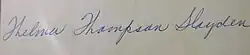 - — (23 April 2018). Thelma Thompson Slayden signature (jpg). "Penn Libraries Schimmel Fiction 4454: Inscription" by Provenance Online Project is licensed under CC BY 2.0. Retrieved 29 March 2025.