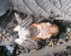 Theloderma asperum is a frog in the family Rhacophoridae. It is also known as the pied warty frog, hill garden bug-eyed frog,[2] or somewhat informally, bird poop frog.[3] The frog can be found in the northeastern India, Bangladesh,[4] Bhutan,[5] Burma, China (Tibet, possibly more widely), Thailand, Cambodia, and Vietnam as well as Sumatra in Indonesia.[1] However, because of confusion with Theloderma albopunctatum and Theloderma baibungense, it is known with certainty from its type locality in Peninsular Malaysia.[2][6]