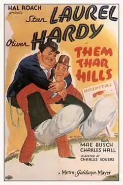 Them Thar Hills is a 1934 American comedy short film directed by Charley Rogers and starring Stan Laurel and Oliver Hardy.[1] The film was so well received by audiences that producer Hal Roach and Metro-Goldwyn-Mayer made a sequel, Tit for Tat, which was released five months later, in January 1935.[1]