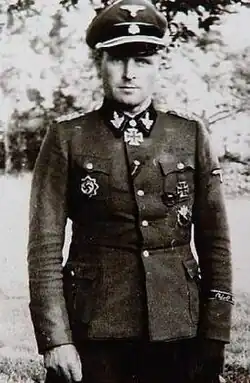Theodor Peter Johann Wisch (13 December 1907 – 11 January 1995) was a high-ranking member of the Waffen-SS of Nazi Germany during World War II. He was a commander of the SS Division Leibstandarte (LSSAH) and a recipient of the Knight's Cross of the Iron Cross with Oak Leaves and Swords. He assumed command of the LSSAH in April 1943.[1] He was seriously wounded in combat on the Western Front by a naval artillery barrage in the Falaise Pocket on 20 August 1944, and replaced as division commander by SS-Brigadeführer Wilhelm Mohnke.[2]