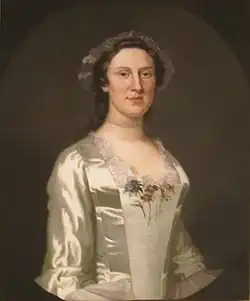 Despite her family's background (both her stepfather and husband were officers of the Royal American Regiment) Theodosia aligned herself with the Patriots,[3] counting William Livingston and Robert Troup as friends and allies.[5] During the Revolution Theodosia's home, the Hermitage – named after the cottage of Jean-Jacques Rousseau – became a gathering-place for American soldiers. When she heard that George Washington was in the area following the Battle of Monmouth she extended an invitation for him to stay there. He accepted this invitation in July 1778, and briefly utilized the Hermitage as his headquarters.[6] The home and its culture were "decidedly French" due to Theodosia's background, and she was known for the intelligent conversation her French salons represented.[3] Other visitors included generals Charles Lee and Jeremiah Wadsworth.[7]