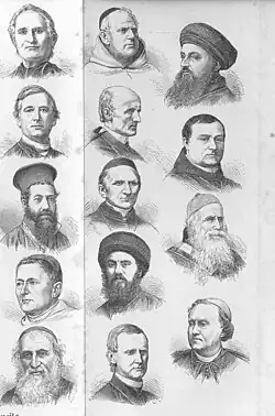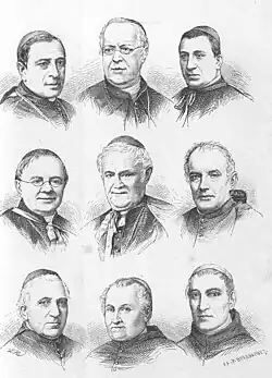 The Syllabus nevertheless was controversial at the time. "The Pope whose influence and State was seen as declining, even ending before the Syllabus, was at once the center of attention as the powerful enemy of progress, a man of boundless power and dangerous influence."[10] Anti-Catholic forces viewed the papal document as an attack on progress, while many Catholics were happy to see their rights defined and defended against the encroachment of national governments.[11] European Catholics welcomed the idea that national churches are not subject to state authority,[11] an idea long practiced in France, Spain, and Portugal under various versions of Gallicanism. American Catholics, who saw agreement of the papal views on the role of the State in Church affairs with those of the founding fathers, rejoiced over the definition of temporal rights in the areas of education, marriage and family.[11]