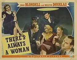 There's Always a Woman is a 1938 American comedy mystery film directed by Alexander Hall and starring Joan Blondell and Melvyn Douglas. Seeing the potential for a series, Columbia Pictures quickly made a sequel, There's That Woman Again, released the same year, with Douglas reprising his role, but with Virginia Bruce as Sally. No further sequels were made.