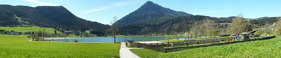 The Thiersee Lake lies in the center of Vorderthiersee in the valley with the same name on a height of 616 m. It is surrounded by mountains forming a kettle. The lake can be reached by car or by local bus from Kufstein via the valley.