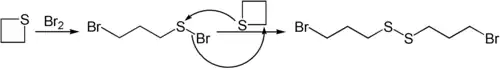 Nucleophiles like butyllithium can open the ring in thietane.[12] Thietane also reacts with bromine.[13]