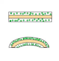 The pulvinus is a motor structure consisting of a rod of sclerenchyma surrounded by collenchyma. Such pulvini occur widely in the Fabaceae. In its extended position, the cells of the entire collar of collenchyma are distended with water. On receiving the action potential signal, the cells in the lower half of the pulvinus respond by expelling potassium and chlorine ions and taking up of calcium ions. This results in an osmotic gradient that draws water out of the affected cells, so that they temporarily shrink. This pulls the entire structure downward like a folding fan.