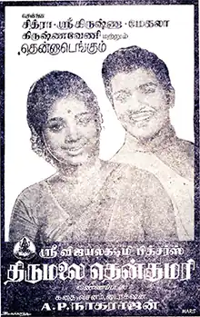 Thirumalai Thenkumari was among the earliest road films in Tamil cinema,[2] and took inspiration from the 1969 film If It's Tuesday, This Must Be Belgium. Unlike the original, it was given a "religious twist", with its premise focusing on a group of passengers who embark on a pilgrimage across South India, visiting places like Tirupati and Madurai. The film was actually shot in the places depicted onscreen, as opposed to using sets.[3] Since it was previously believed in the Tamil film industry that writer-director A. P. Nagarajan's films were successful only because of their star casts and "mammoth" scales, rather than his directorial skills, he made this film, which featured mostly newcomers, to silence his critics.[4] Cinematography was handled by W. R. Subba Rao, the art direction by Ganga, and the editing by T. Vijayarangam.[5] The film, which was produced by C. Paramasivan under the banner Sree Vijayalakshmi Pictures, was completed within a month.[6][7]