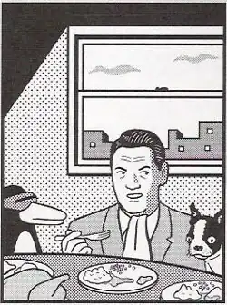 The '50s theme extends to the typically verbose dialogue of the strip's human characters, which is often bubbly, over-enthusiastic, and naïve. The stupidity of the humans is countered by Sparky, a fast-talking penguin (although the strip occasionally postulates he is actually an auk) with a red visor, who provides much of the strip's political commentary.
