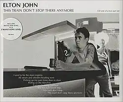 "This Train Don't Stop There Anymore" is the final track on Elton John's 2001 album Songs from the West Coast. Written by John and Bernie Taupin, the song's lyrics detail John's fame being over and his coming to terms with getting older but still touring and performing around the world. It was released as the second single from the album and reached No. 24 in the UK Singles chart[1] and was a Top 10 Adult Contemporary chart hit in the US. The song was less successful in the Netherlands, reaching No. 83.[2]