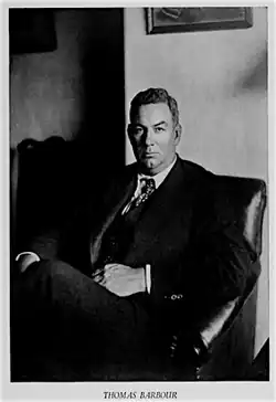 Thomas Barbour (August 19, 1884 – January 8, 1946) was an American herpetologist. He was the first president of the Dexter School in 1926. From 1927 until 1946, he was director of the Harvard Museum of Comparative Zoology (MCZ) founded in 1859 by Louis Agassiz at Harvard University in Cambridge, Massachusetts.[1]