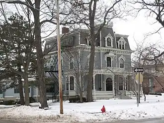 Carson was one of the passengers on the first train to enter Iowa City.[2] He went to become a prominent merchant and banker in the community, and was involved with the local utility companies that his sons controlled. He had this house built in 1875 in Second Empire style. The three-story frame house features a mansard roof with a concave slope, and elaborate dormers. It was individually listed on the National Register of Historic Places in 1982.[1] In 1997 it was included as a contributing property in the College Green Historic District.[3]