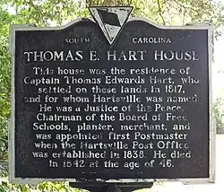 South Carolina state historical marker for the Thomas E. Hart House