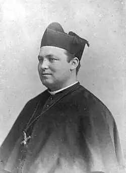 Walsh reorganized the law school and in 1882 he built the Science Hall.[3] He also built Sorin Hall which was the first freestanding residence hall on campus and one of the first in the country to have private rooms for students.[4] Walsh was initially against this innovation, as he believed private rooms would lead to disciplinary issues, but this project was championed by Sorin and John Zahm.[5] During his tenure, Notre Dame started its football program and started awarding the Laetare Medal.[6]