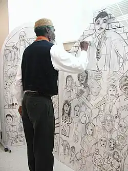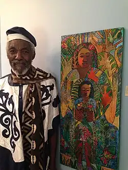 Reddy's artwork as a Social Realist painter that reflect the traditions of the Harlem Renaissance are held in permanent collections at the Tweed Museum of Art in Duluth, Minnesota and the University of North Carolina at Charlotte's J. Murrey Atkins Library.[8] "Reddy's mixed media paintings largely use acrylics and he has added natural materials, such as paper, sand, wood, fabric and clay. He is also known for his murals and public art projects.[9] "His work is inspired by travels throughout the Caribbean and seacoast islands of the southern United States, and by the migrations of people of African and Caribbean descent to the Americas," according to the University of North Carolina at Charlotte Africana Studies Department where Reddy was a visiting artist in 2008–2009. "His paintings are richly textured two-dimensional narratives with a spiritual and universal quality that expresses a profound appreciation for culture, which he defines as shared human values."[9]