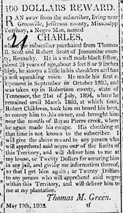 Thomas Marston Green Jr. (February 26, 1758 – February 7, 1813) was a Mississippi Territorial politician, planter, and delegate to the United States House of Representatives during the 7th United States Congress representing the Mississippi Territory.[1]