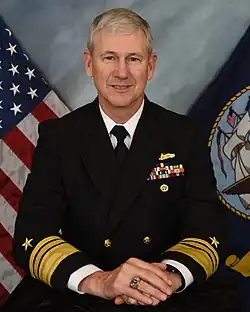 Vice Admiral Thomas J. Moore (born 1959) was a senior officer in the United States Navy. He retired from active duty on June 19, 2020, after 39 years of service.[2] He currently serves as Vice President of Customer Relations for the Mission Technologies Division at Huntington Ingalls Industries.[3]