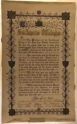 - ^ Menadue, J. E. (1971). A Centenary History of the Australian Natives' Association 1871 - 1971. Melbourne: Horticultural Press. p. 36.