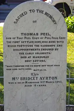 - ^ a b c d e f g h Alexandra Hasluck, 'Peel, Thomas (1793 - 1865)', Australian Dictionary of Biography, Vol. 2, MUP, 1967, pp 320-322. retrieved 2009-11-04