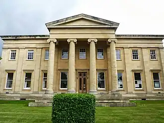 In 1863, Phillipps began to move the collection as he was fearful that his son-in-law, James Orchard Halliwell, would gain ownership of it when Phillipps's estranged daughter inherited Middle Hill. Halliwell was apparently a book thief (Phillips accused Halliwell of stealing his 1603 copy of Hamlet, which he sold to the British Museum minus the title page containing Phillipps' book stamp) and also a destroyer of other valuable old books, cutting out pages to stick them in his scrapbook.[6] At least 105 wagon-loads, each drawn by two horses and accompanied by one or two men, were used to move the collection to Thirlestaine House in Cheltenham over a period of eight months, leaving Middle Hill to fall to ruin.[12] The previous owner of Thirlestaine House was John Rushout, 2nd Baron Northwick, whose important art collection had been sold in 1859 after he died intestate.[13] There are thus numerous MSS named "Codex Middlehillianus", "Cheltenham Codex" or "Codex Cheltenhamensis".[14]