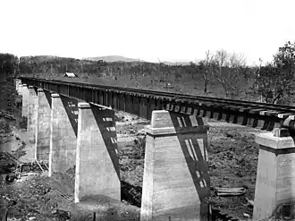 In 1923, a large steel-and-concrete railway bridge was erected over the Andromache River as part of the construction of the North Coast railway line. It is on the boundary of three adjacent localities (Andromache, Bloomsbury, and Thoopara).[7][8][9]
