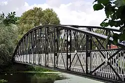 In 1883 and 1884, the company built an iron bridge to replace a wooden footbridge connecting Burton to Andresy island. This led to the company's appointment to build a further bridge in the town.[7] The construction in 1889 of Burton's Ferry Bridge and the connecting viaduct to Bond End, at a total cost of just over £10,000, was one of the firm's major achievements in that field,[11][13] the bridge being designed by Edward William Ives (1851-1914?),[14] with assistance from Alfred Andrew Langley, chief engineer of the Midland Railway.[15]