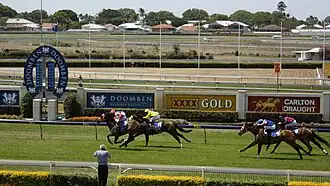 Thoroughbred horse racing is a spectator sport in Australia, and gambling on horse races is a very popular pastime with A$14.3 billion wagered in 2009/10[1] with bookmakers and the Totalisator Agency Board (TAB). The two forms of Thoroughbred horseracing in Australia are flat racing, and races over fences or hurdles in Victoria and South Australia. Thoroughbred racing is the third most attended spectator sport in Australia, behind Australian rules football and rugby league, with almost two million admissions to 360 registered racecourses throughout Australia in 2009/10.[1] Horseracing commenced soon after European settlement, and is now well-appointed with automatic totalizators, starting gates and photo finish cameras on nearly all Australian racecourses.