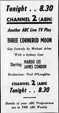 Three Cornered Moon is a 1957 Australian television play starring James Condon.