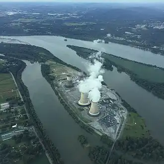 ![]() Three Mile Island in 2019, prior to shutdown. | |