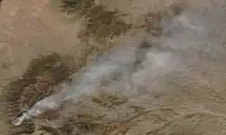 ![]() Smoke from the Three Rivers Fire as seen from space | |