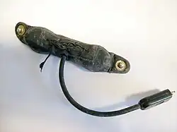 Charles Edmond Prince led the development of throat microphones for the British during World War I for use in the noisy and windy environment of aircraft cockpits. Over a 3 year period from 1915-1918 they went through a series of prototype and production handheld "airplane telephones" before arriving at a hands free throat mic incorporated into a leather flying helmet.[4][5]